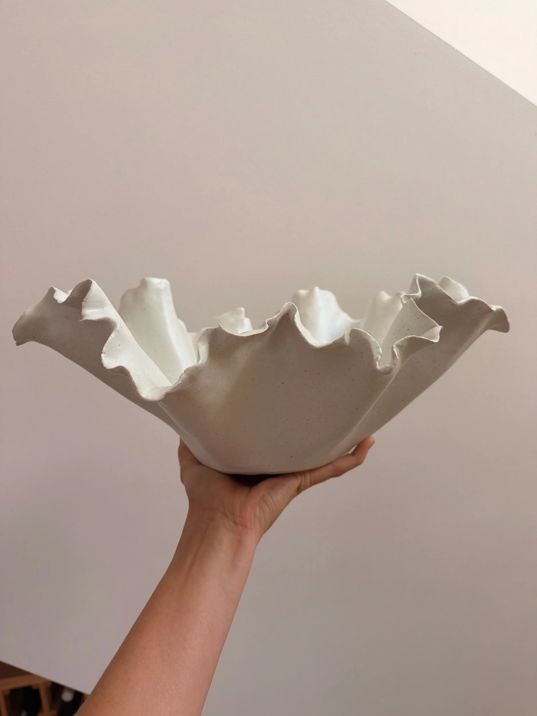 Each Ruffle Vase is hand-built, creating its signature organic, flowing edges that feel both sculptural and effortless. No two are ever the same — slight variations in shape and finish are what make each piece uniquely yours.